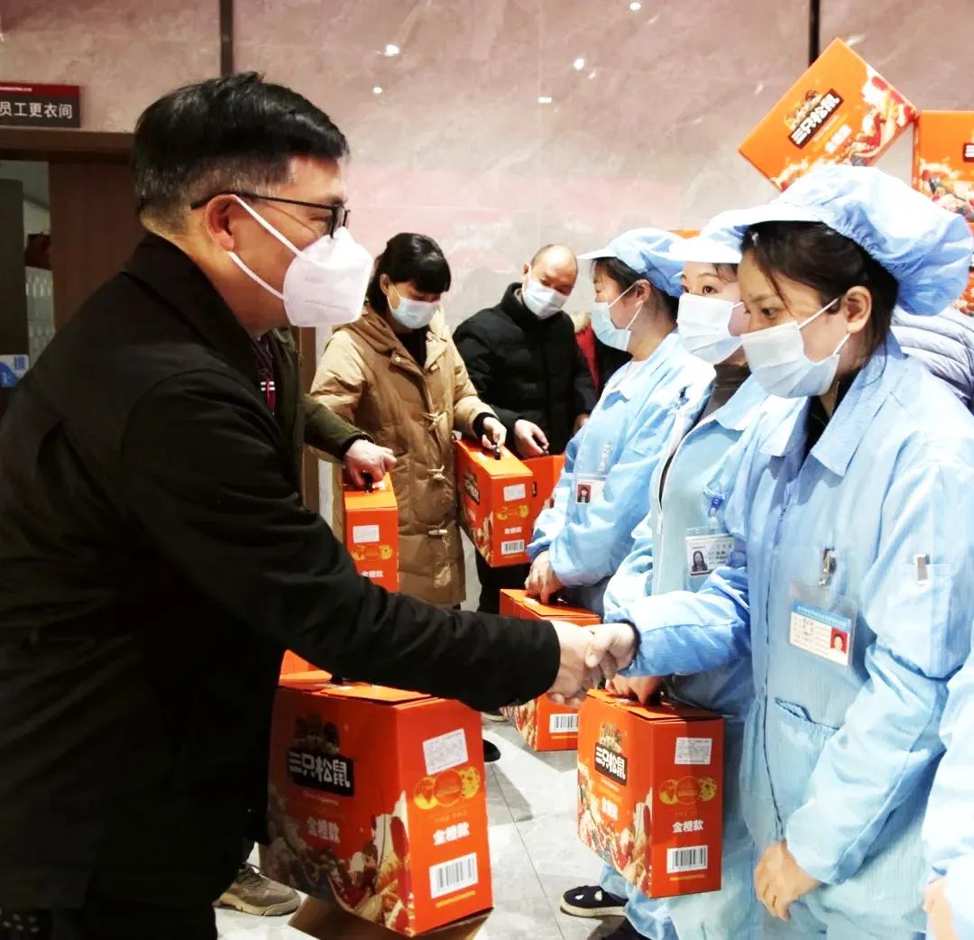 在長虹佳虹智能制造產業園職工食堂,鄔江代表控股集團工會向去年來曾在斗高溫酷暑與防疫戰中,不辭辛勞,堅持為一線職工提供可口飯菜做好后期服務的佳虹職工們致以敬意,感謝他們的辛勤付出,并向他們表示了新春慰問。