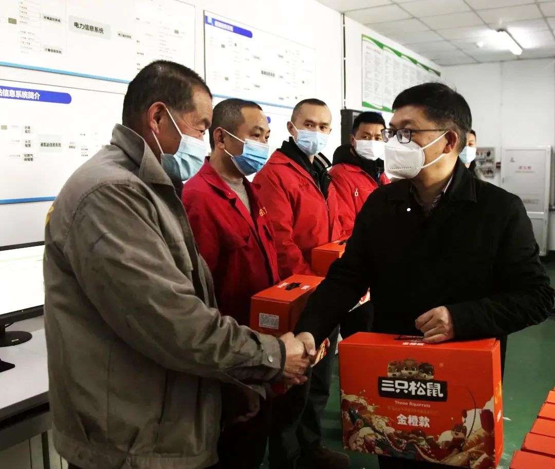 在智能產業園動力站,鄔江看望了長期放棄節假日一直倒班工作的動力站職工,對他們為保障產業園區工廠的動力而嚴謹工作表示感謝,并對他們致以新春的祝福和慰問。